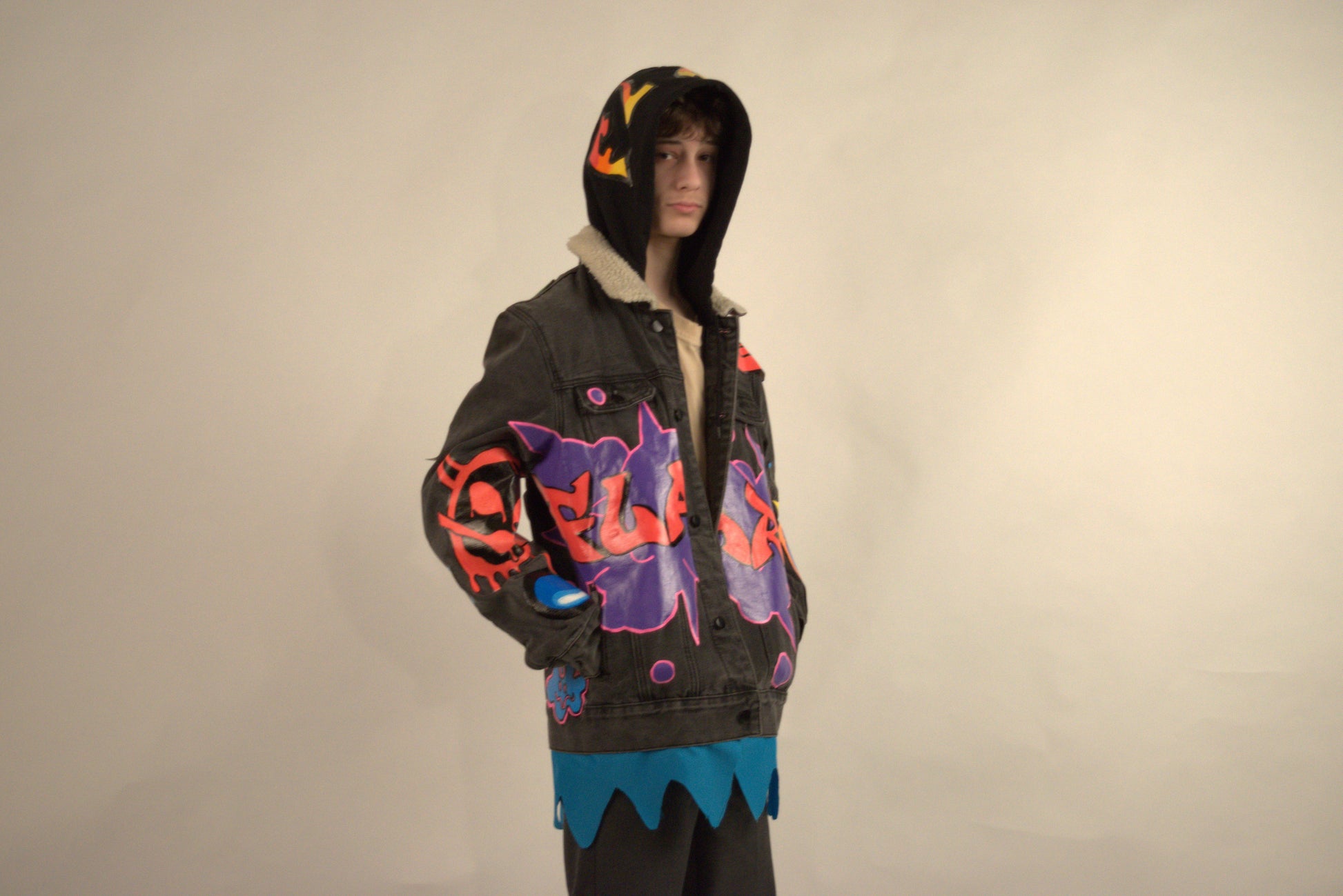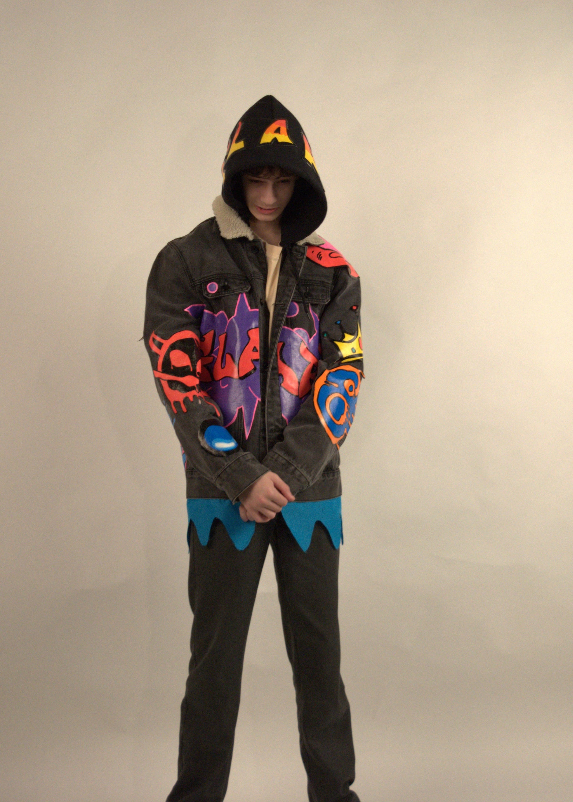 The FLARE Denim Jacket is a bold fusion of classic denim and modern artistry. Designed with premium denim construction, it features unique linen flaring along the hem for a layered, standout look that sets it apart from the ordinary. Built for comfort and style, this jacket balances everyday wearability with fashion-forward details, making it a true conversation starter. Perfect for those who want their outfit to make an impact, the FLARE jacket represents creativity, individuality, and street-inspired edge.